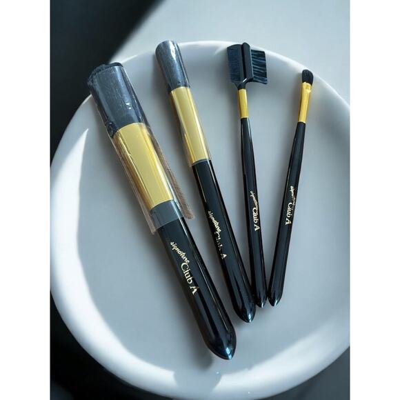 Get ready to enhance your makeup routine with this brand new 4-piece makeup brush set from Signature A Club! This set includes brushes for your eyes, blush, and face, providing you with all the essential tools you need for a flawless application. These brushes are designed to deliver professional-quality results, making them perfect for both beginners and experienced makeup enthusiasts. Treat yourself or surprise a loved one with this wonderful set! Don't miss out on the chance to elevate your beauty game. Grab this fantastic brush set today!