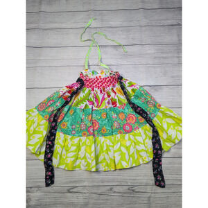 EUC Matilda Jane Platinum Ellie dress. Strawberry print bodice. Tiered floral paneled skirt. Halter straps. Minimum wash wear