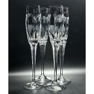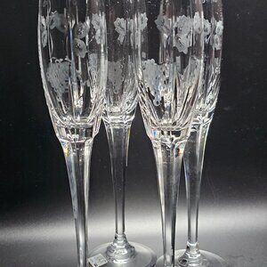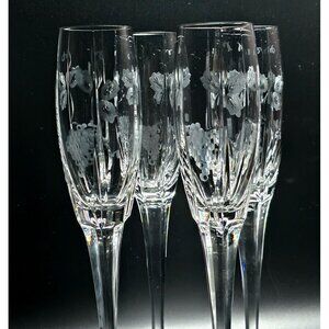 4 Mikasa Bacchus Champagne Flutes 10.7" fine crystal grape vine cut glass elegan