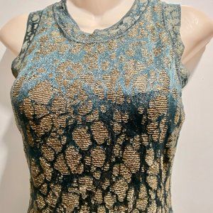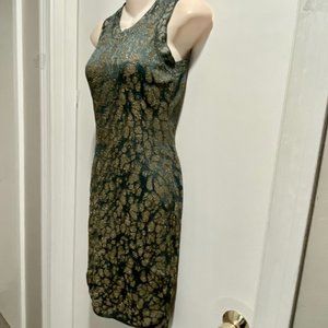 Up for sale is this beautiful woman M by Missoni whimsigoth grunge boho quiet luxury minimalist Emerald/Gold Textured Stretch Fitted Mini Midi ( just above the knee ) Lined Sheath Dress. Excellent used condition, size 6/8 US, 40 EUR. Let me know if you need measurements. Check my other listings for women. To save bundle up your items or make an offer.