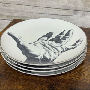 (4) Mitchell Black Chicago Ceramic Plates Hand Reaching Out Black & White 8.5”