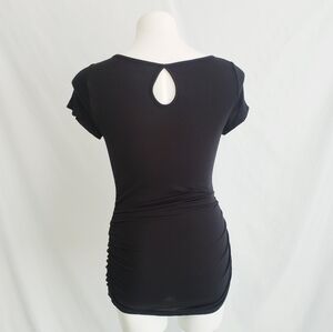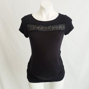 - Motherhood Maternity soft black short sleeve top with macrame/lace detail at neck and keyhole opening in back
