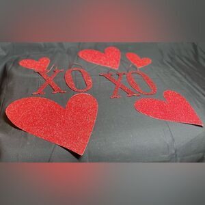Glitzy Sparkles Love XOXO Red Glitter Letters Bonus 5 Red Glitter Hearts Love Decor NWOT