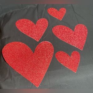 BONUS 5 Red Glitter Hearts various sizes exceptional previously loved condition see photos to show blemishes