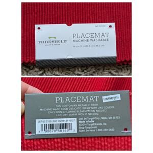 4 NWT Threshold Placemat Machine Washable 14X19in Cotton Red Metallic Fiber Ribbed Christmas Holiday