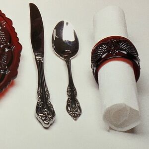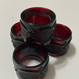 Rings. Set of four. 1.75”wide. Can be used with a casual simple table setting,as well as a formal occasion or just to add to your cape cod collection. The Cape Cod Collection is very attractive with the royal Ruby color and the cut design in the glass !!