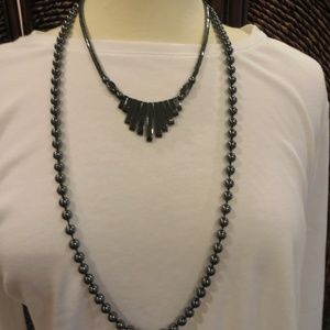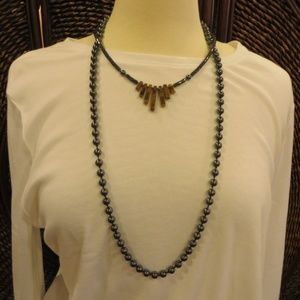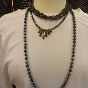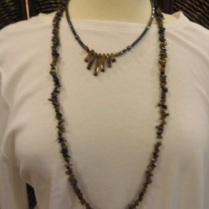 Includes: approximately 34 inches long hematite bead necklace (no clasp), approximately 36 inches long tigers eye necklace (no clasp), approximately 20 inches long hematite and tigers eye necklace (silver tone barrel clasp), approximately 20 inches long hematite necklace (silver tone barrel clasp).