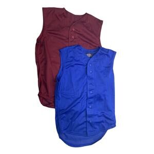 These new plum, royal blue, green and burgundy youth large baseball vests are brand new! chest is 20" across, length is 24", so cool! Get 4 shirts for one great price!