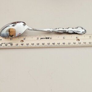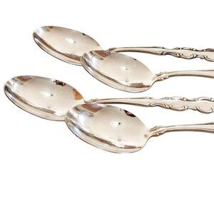 4 Oneida Deluxe Mozart Soup Spoons scalloped edge baroque scrolls 80s vtg stainl