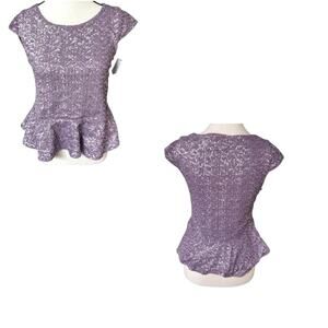 1.EDEN Y2K VTG. LILAC PURPLE SEQUIN PEPLUM PARTY TOP SMALL