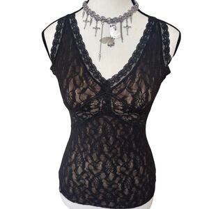 2. Y2K 2000'S SOMA BLAC LACE WITH NUDE UNDER LINING BODY CON STRETCHY TOP SMALL