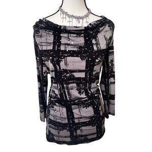 3. STYLE & CO. VTG. Y2K GRAPHIC SEQUIN SILVER SPARKLE GOING OUT/WORK TOP SMALL.