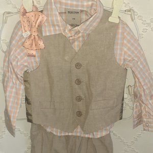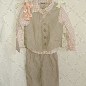 4 PC KENNETH COLE REACTION OUTFIT SUIT PANTS SHIRT VEST & BOW TIE-BOYS SIZE 12M