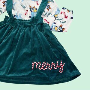 4 PC LOT OF KIDS CHRISTMAS OUTFITS GARANIMALS BLUEY SWEATER TOP & PINAFORE SKIRT
