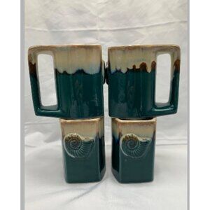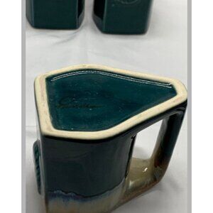 4 PC Rodolfo Padilla Artist Signed Drip Glazed Coffee Cup Mug Emerald Green