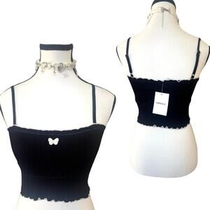 4.FOREVER 21 MINI SEAMLESS BLACK BUTTERFLY CROP TOP TANK
