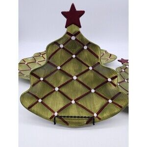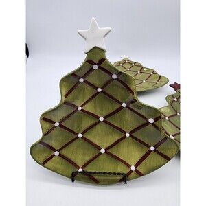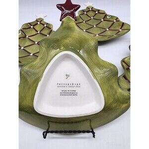 4 POTTERY BARN Appetizer Candy Plates Season's Greetings Christmas Tree Holiday
