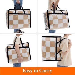 🧿Easy to Use: The storage bins with lids feature reinforced carry polyester webbing handles for enhanced durability. With their ample length, these handles allow for easy one-handed carrying or convenient shoulder transportation. The transparent color of the comforter storage bag enables effortless visibility, allowing you to quickly locate and access your belongings.