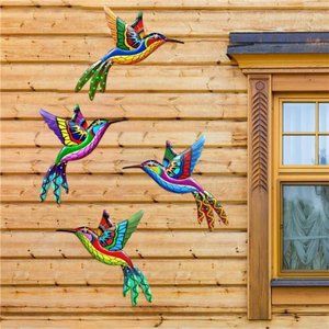 4 Pack Metal Hummingbird Wall Art Decor Metal Colorful Birds 3D Hanging Decor