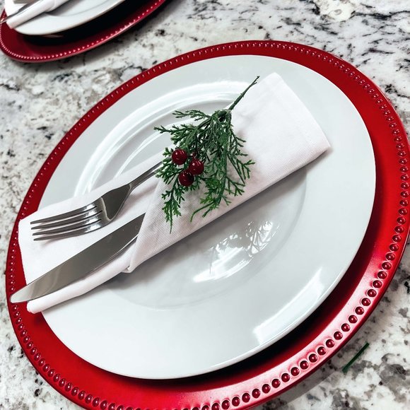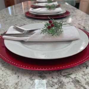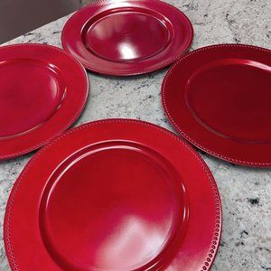 4 Pack | Red Charger Plate Set Christmas Holiday Table Decor