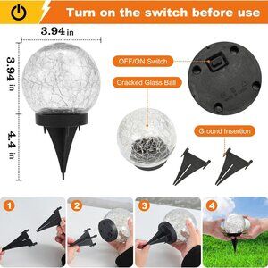 🧿【Easy installation】This solar globe lights outdoor waterproof is incredibly easy to install, no manual needed. It's so user-friendly that even seniors and kids can set it up effortlessly. Plus, you have the flexibility to move it wherever you want. Just let it charge for about 4 hours in a sunny spot during the day, and it'll stay lit for approximately 12 hours at night.