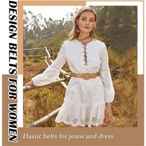 🧿Made of high quality stretching polymer and straw, each elastic braided waist belt is soft to touch and light in weight, comfortable to wear and well cover your waist, showing your elegance and charm in different occasions.