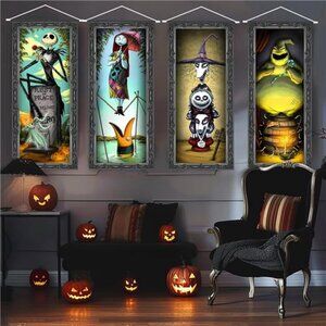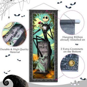 4 Packs Jack Sally Banners Porch Signs Halloween Decor Christmas Nightmare