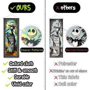 [CUTE PATTERN DESIGNS] Come with 4 PCS Halloween Christmas-nightmare vintage porch sign banners. Come and see, it is Jack and Sally to join your Halloween party. What's a Halloweentown FESTIVE without these cute Halloween decorations clearance?