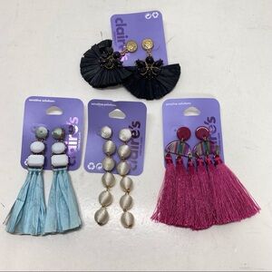 (4) Pairs Claires Boho Fashion Retro Tassel Dangle Pierced Earrings