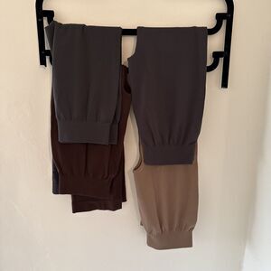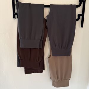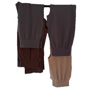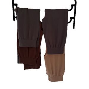 3 pairs are cropped: brown and 2 gray. 1 pair is full length: mocha color. All excellent condition, one pair still has a tag on it.