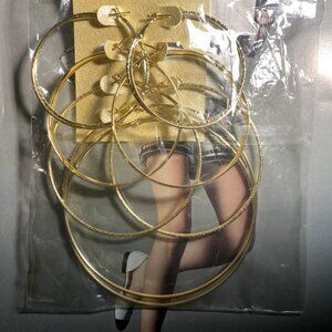 4 Pairs Set Of Hoop Earrings Iron 18K Gold Plated Jewelry Simple Classic Style