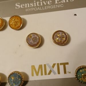4 Pairs of MixIt Multicolored Gold Tone Earrings - Orange, Purple, Blue, Green