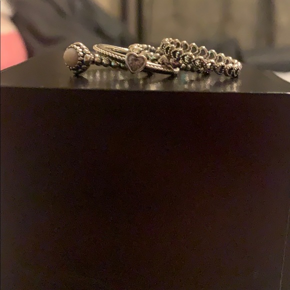 these rings I received as a gift, the pink one is a size 8 and the other 3 are a size 9, they are great for stacking and mixing them up with different outfits or for everyday