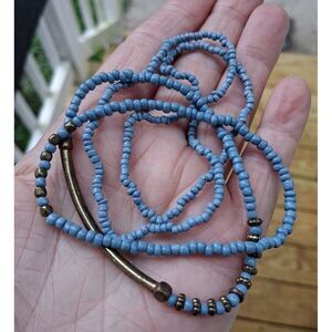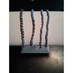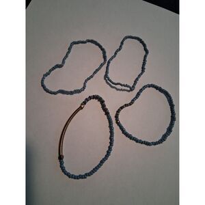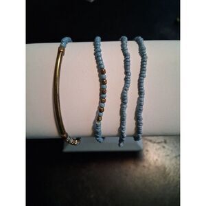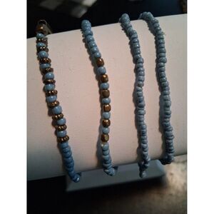 4 Pc Beaded Bracelet Set Stretch Blue & Gold Metal Beads