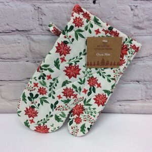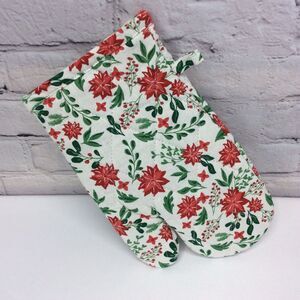 4 Pc Christmas Poinsettia Kitchen Set 2 Towels(Oven/Tea)1 Oven Mitt/1 Pot Holder