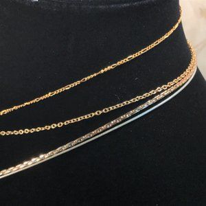 3) w/beveled solid cross pendant. Goldtone. Foldover clasp. Pendant: 1 3/8"H including jumpring. 18"L.