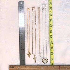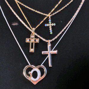 4 Pc Necklace Set Christian Cross God Jesus Church Silver & Gold Tone Rhinestone