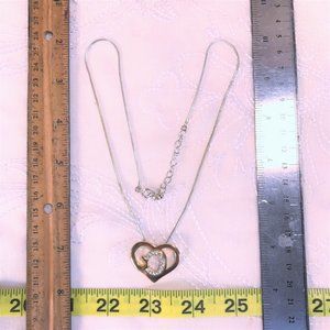 4) w/GOD spelled out in the shape of a heart sliding pendant with clear crystal rhinestone accents. Goldtone pendant. Silvertone chain. Springring clasp. Pendant: 1"H. 20 3/8"L including 2" extender chain.