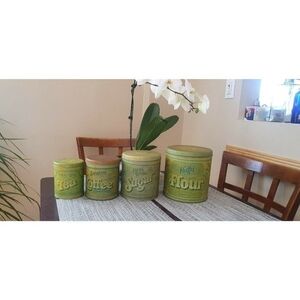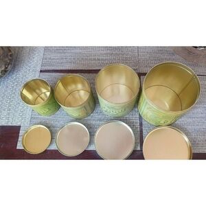 4 Pc Vintage Fluffy Brite White Sunshine Golden Leaf Tins Flour Sugar Coffee