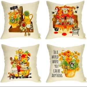 4 Pcs Fall Autumn Summer Thanksgiving Decorative Pillow Cover Case 18"X18"