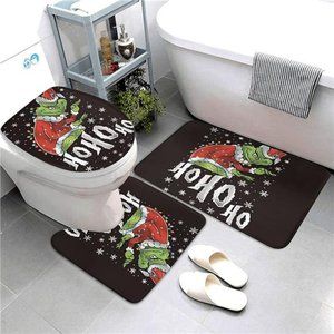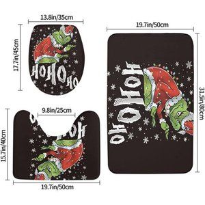 4 Pcs The Grinch Christmas Shower Curtain Set, Toilet Cover and Bath Mat 72x72