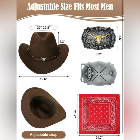 4 Pcs Western Outfits for Men Cowboy Tassel Vest Hat Belt Buckle Paisley Bandana for Halloween Cosplay