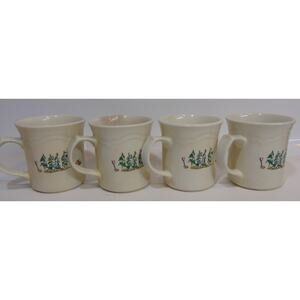 4 Pfaltzgraff Apple Valley Coffee Cup Mug Set Tree Butterfly Rabbit Farmer Garden Vintage Pitchfork Stones Path Wheel Barrell Fruit Heavy Duty Handles Collectible Replacements Decoration