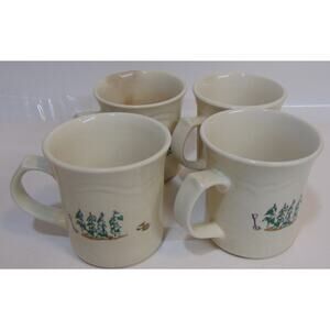 4 Pfaltzgraff Apple Valley Coffee Cup Tree Butterfly Rabbit Farmer Garden Vintag