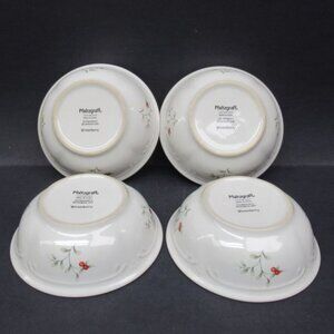 This listing is for four (4) really nice Winter Berry Winterberry 5 5/8 inch diameter cereal bowls made by Pfaltzgraff China. All four bowls are in very good condition with no chips, cracks or scratches. The Winterberry design and green trim are all very good. They are signed on the back: PFALTZGRAFF - COPYRIGHT - MADE IN CHINA - DISHWASHER AND MICROWAVE SAFE - WINTERBERRY. These bowls would make a great addition to any Christmas table setting. Be sure to search our other Pfaltzgraff items, including more Winterberry available.