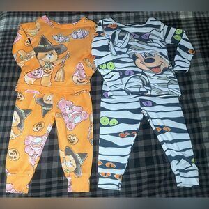 4 Piece Halloween Pajama Bundle Care Bears and Mickey Mouse Size 12 Months