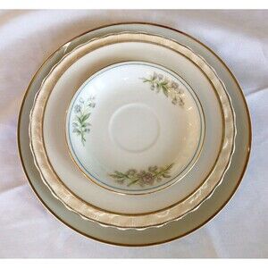 4 Piece Mixed and Matched Fine China Place Setting, Floral and Gold Rim Themed