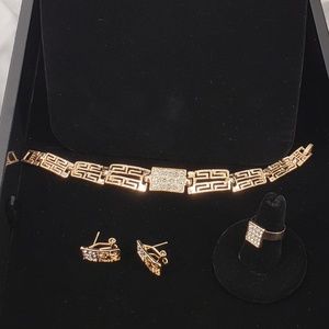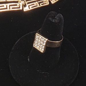 Necklace, bracelet, pierced earrings and adjustable ring.