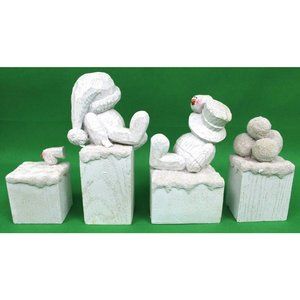 4 Piece SNOW Snowman Figurine Holiday Christmas Decor