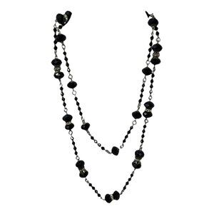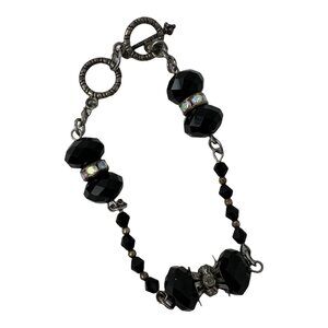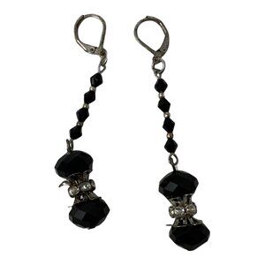 4 Piece Set Necklace Bracelet 2 Pair of Earrings Handmade Black Clear Crystals